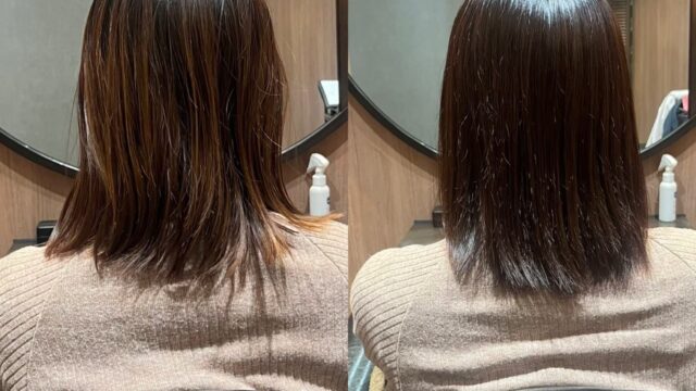 こちらのお客様は、髪が表面だけ明るくなってしまう、クセでまとまらず広がってしまうとお悩みでした。